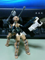 ちなみにこれ、デッサン人形よかはるかに役に立ちます。ちょっと人体の構造的におかしいようなところもあるけど固定フィギアに比べて自由にポーズ取れるし武装させることでいろんなの作れます。かなり使えるおもちゃです。